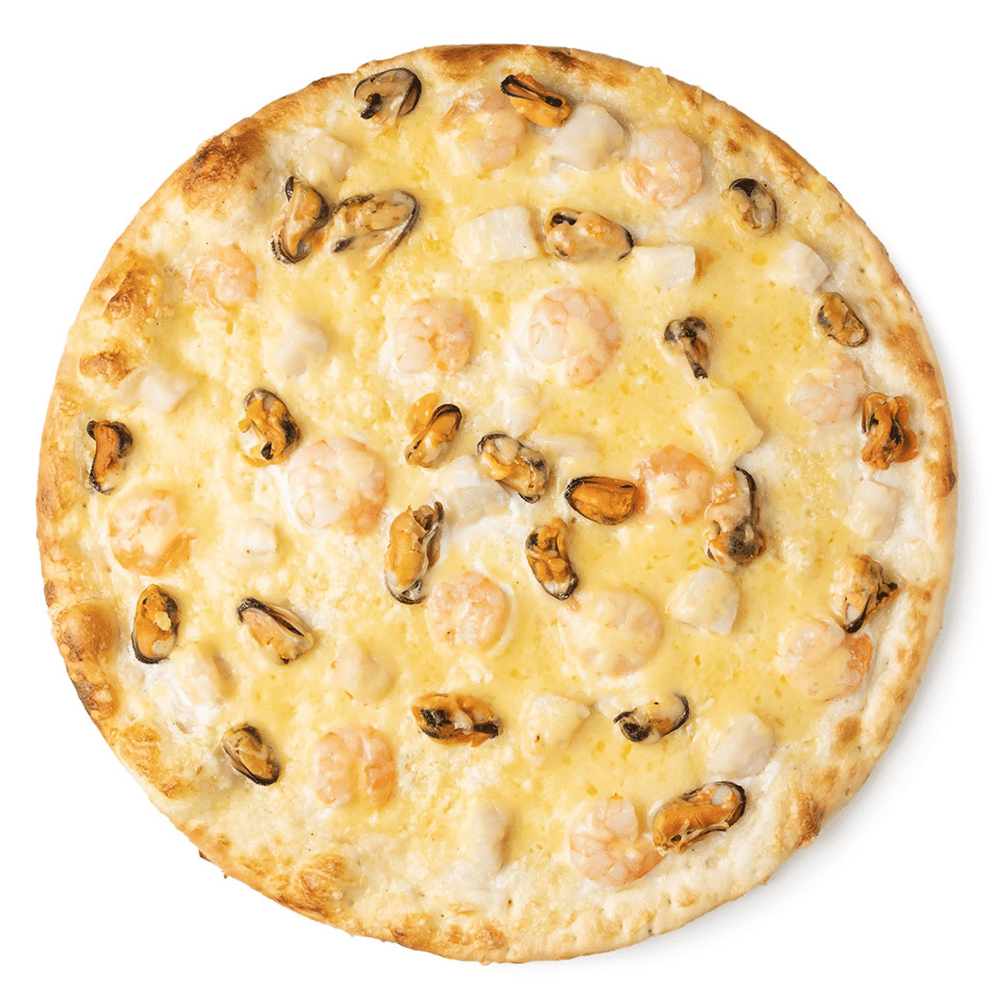Тесто, соус, морской коктейль, сыр